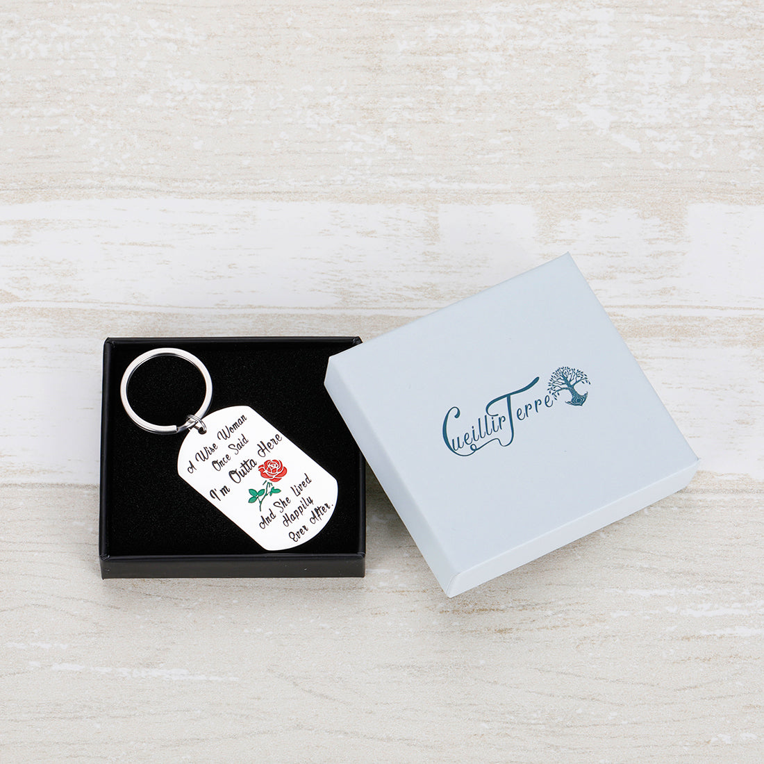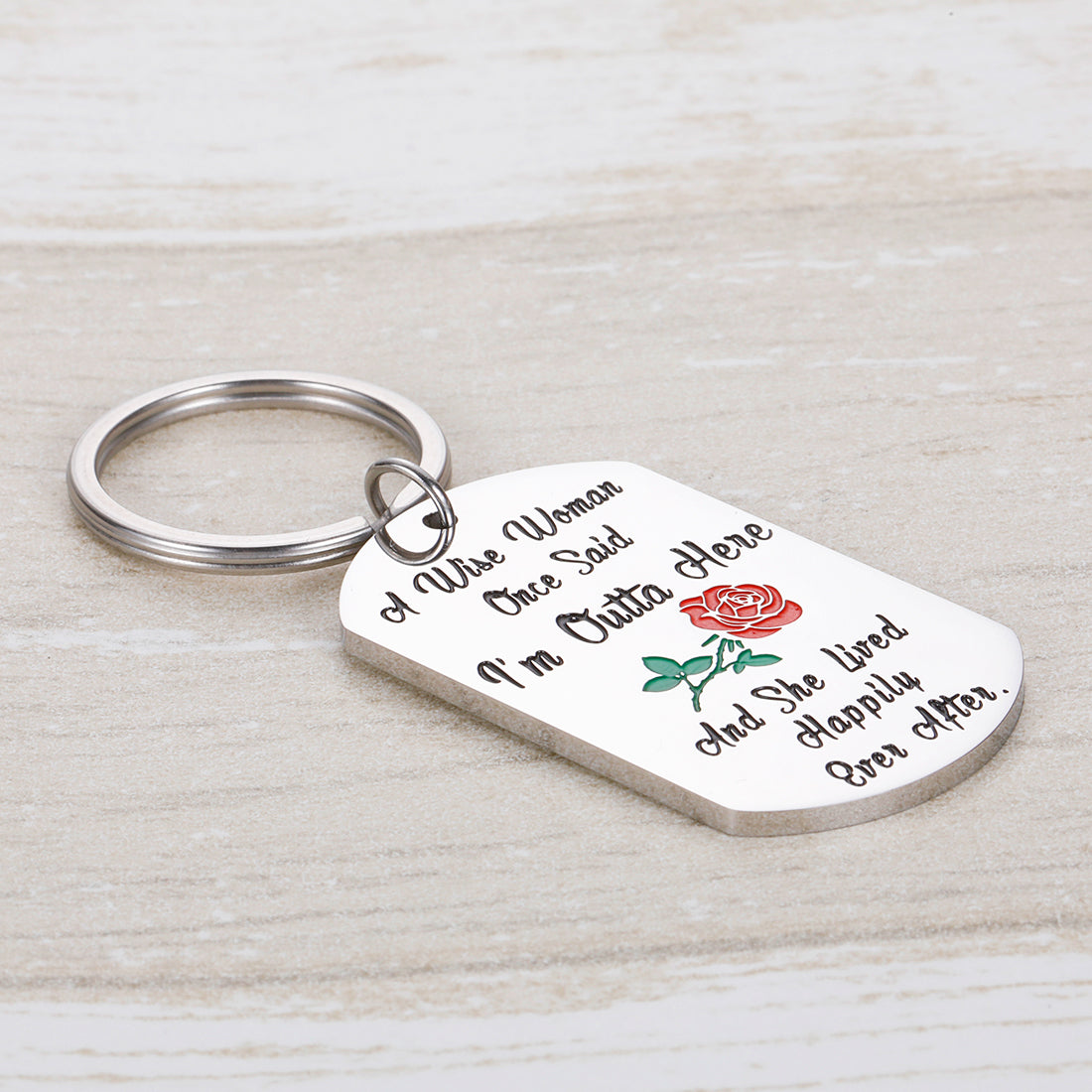 Inspirational Keychain: This keychain is engraved inspirational quotes “A wise woman once said I am outta here and she lived happily ever after”, an inspiring quote can be given to a good friend, wife, single mother, daughter, sister, aunt, coworker or give yourself a gift.
