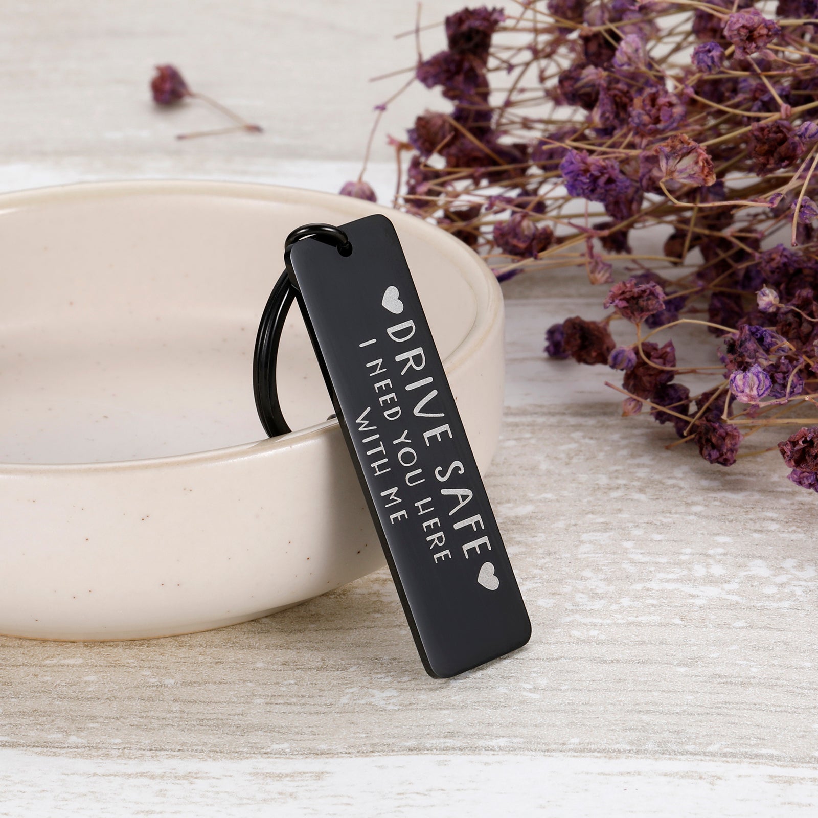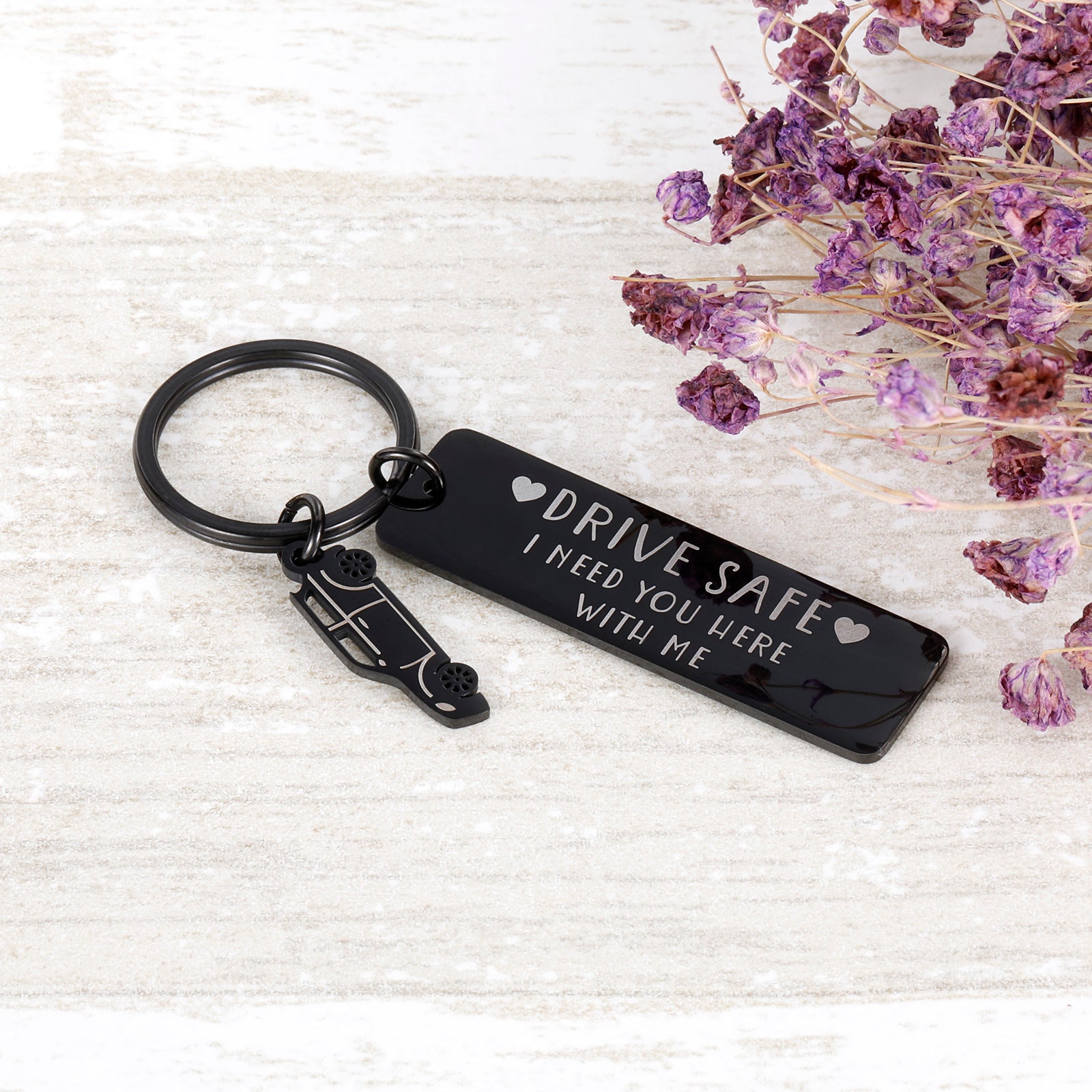 Drive Safe I Need You Here With Me Keychain: Great gift idea for your husband,dad,boyfriend, or friend. Great gift idea for your son or daughter when he or she gets the driver’s license.