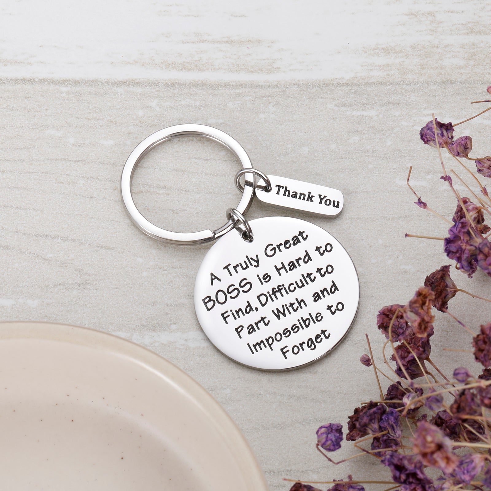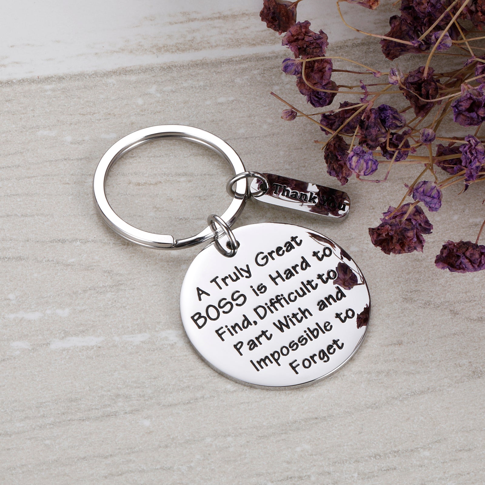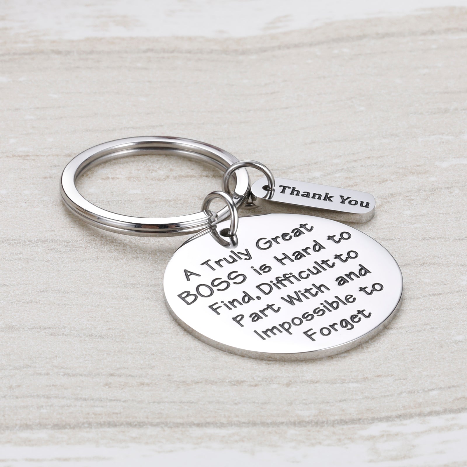 - Boss gift: “A truly great boss is hard to find,difficult to part with, and impossible to forget.” A keychain for leader / mentor / supervisor / boss.