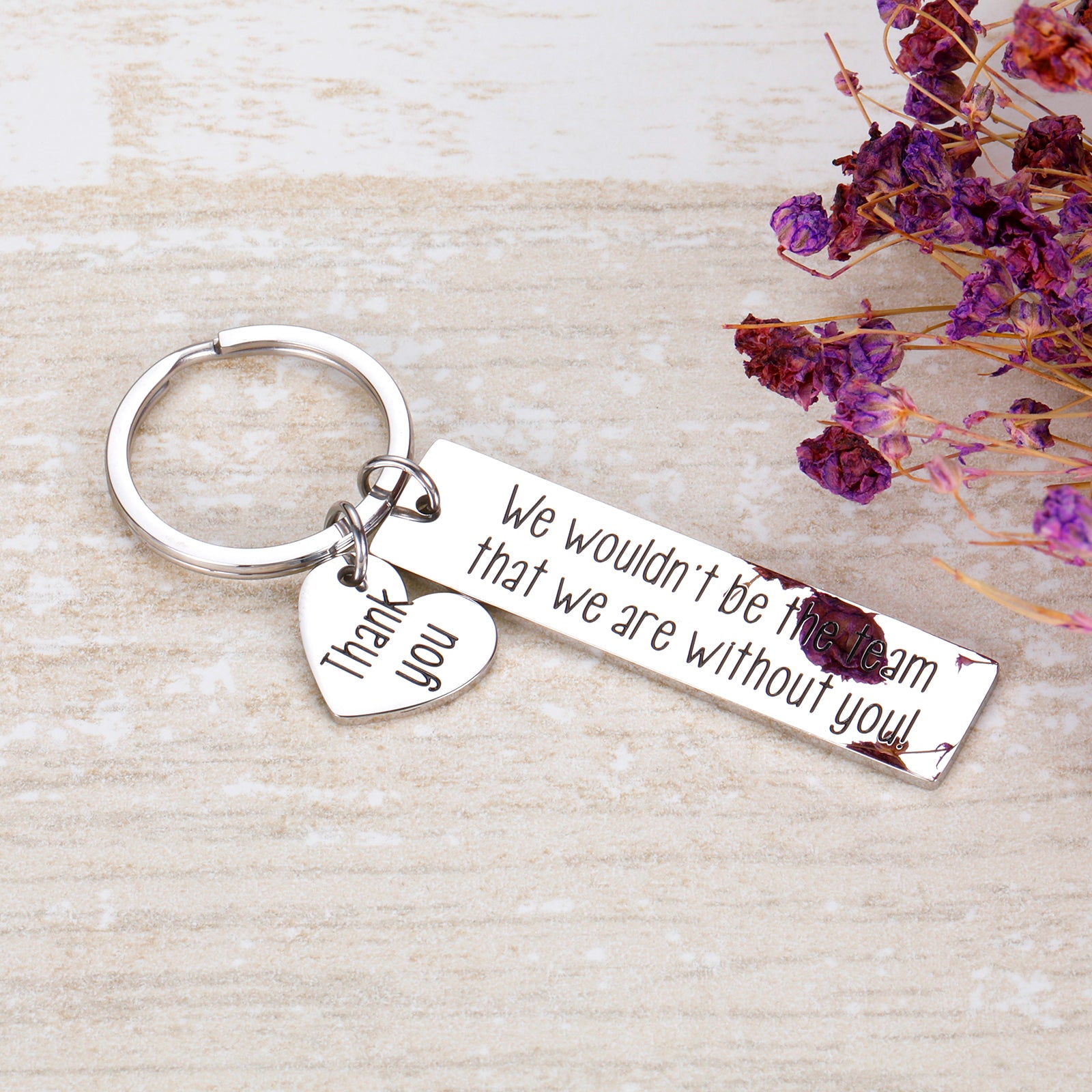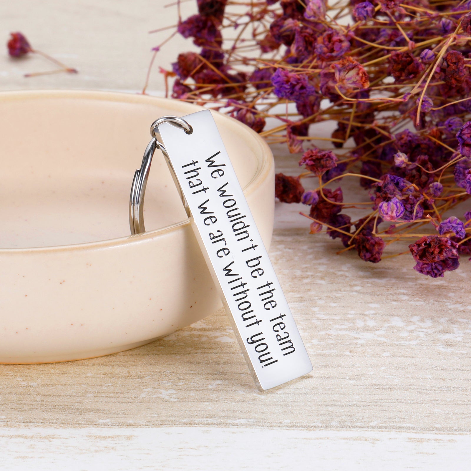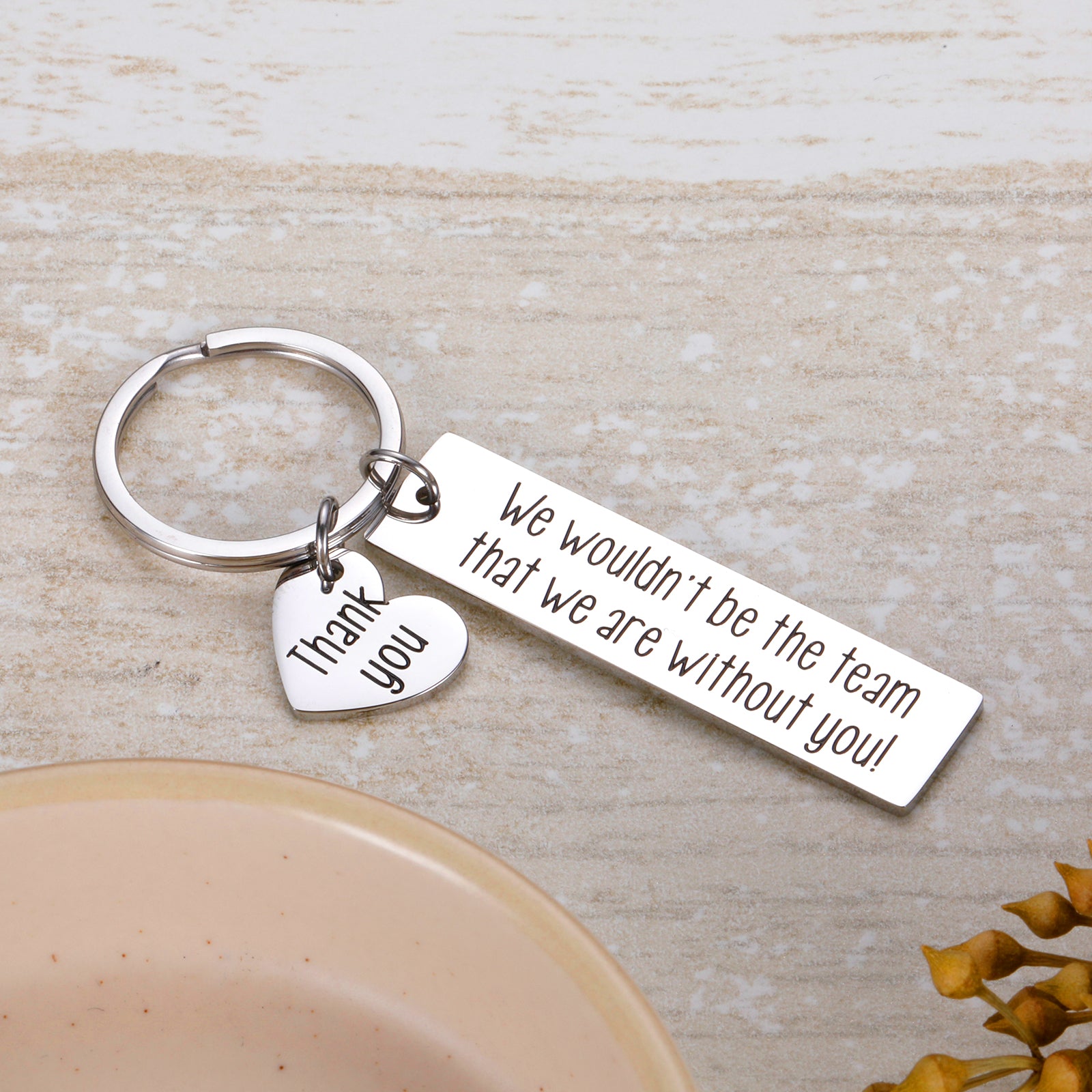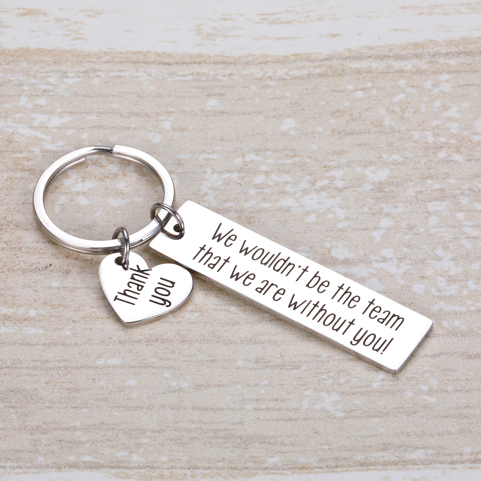 - The keyring gift is wrapped with plastic films and gift box. The double packages prevent scratch during shipping. We pay attention to all details to this team keychain. Best motivational team gifts from employee, coworker, friends, or group members.