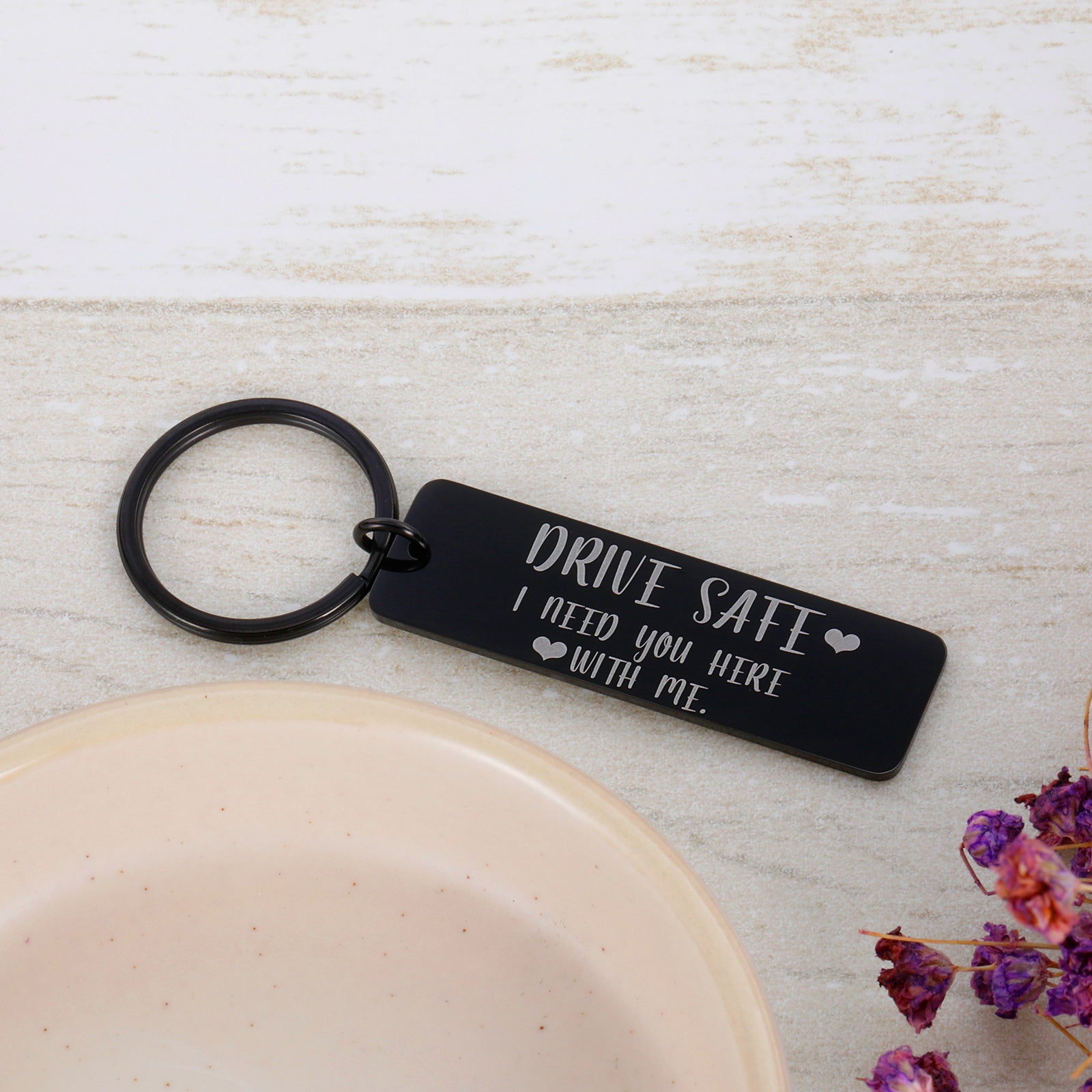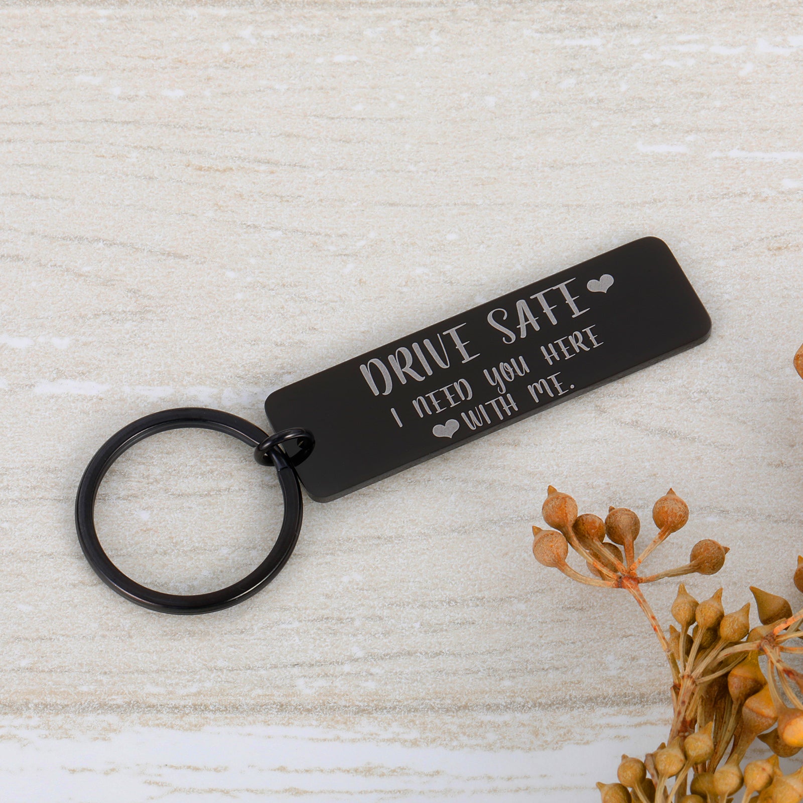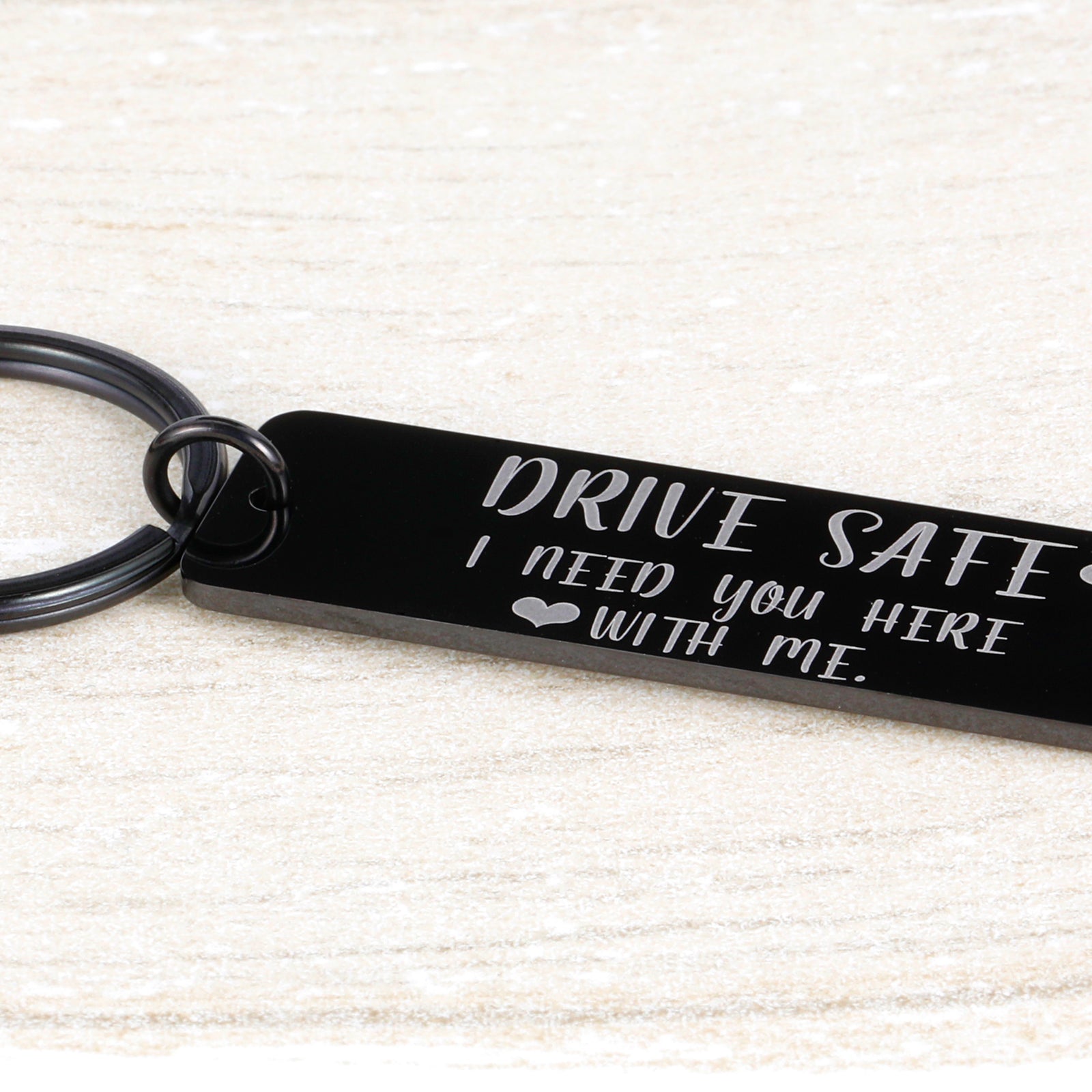 - Drive Safe Keychain: The keychain is engraved with “Drive safe I need you with me”. Keep your loved one safe by reminding them each and every time they start the car, how much you love them!