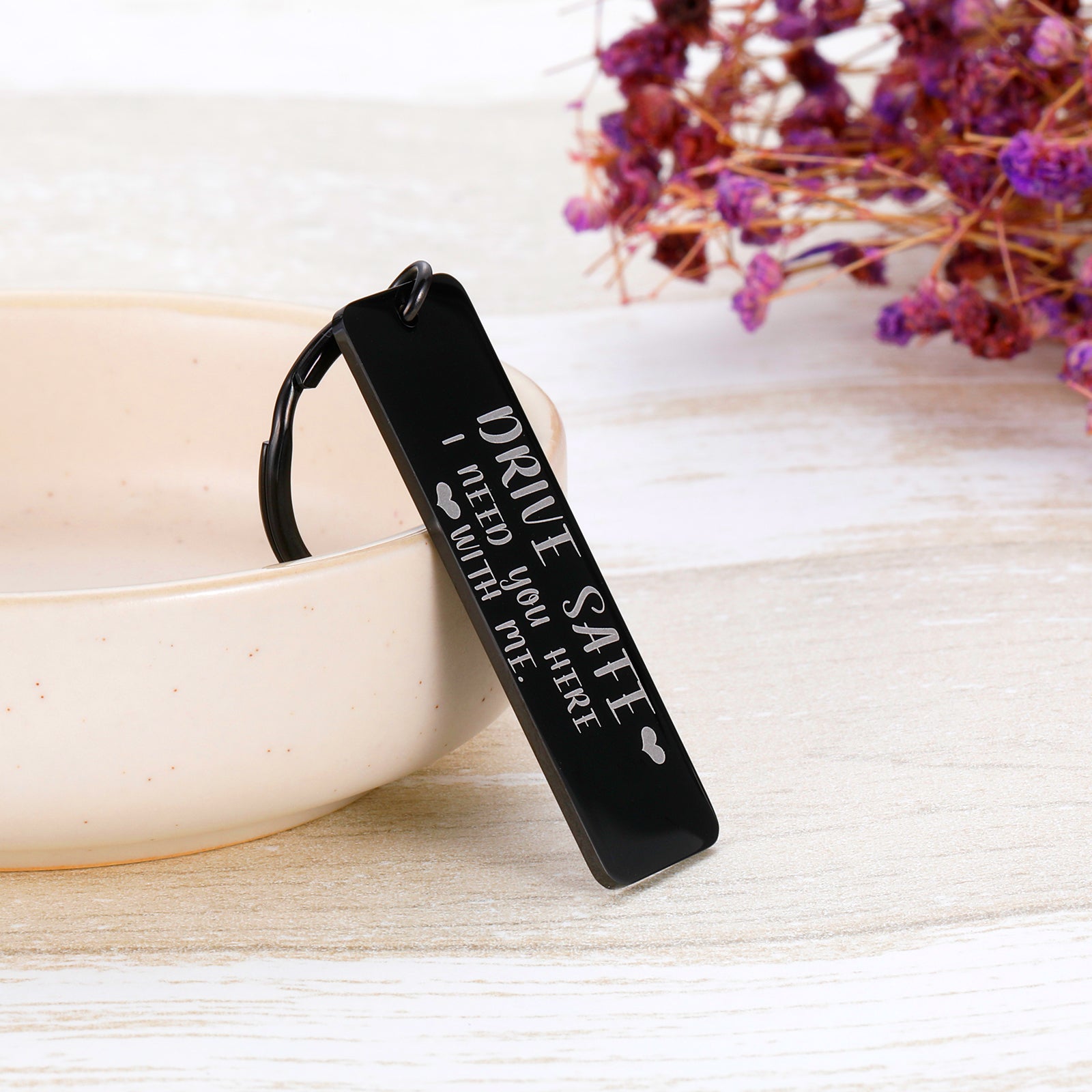 - Drive Safe Keychain: The keychain is engraved with “Drive safe I need you with me”. Keep your loved one safe by reminding them each and every time they start the car, how much you love them!