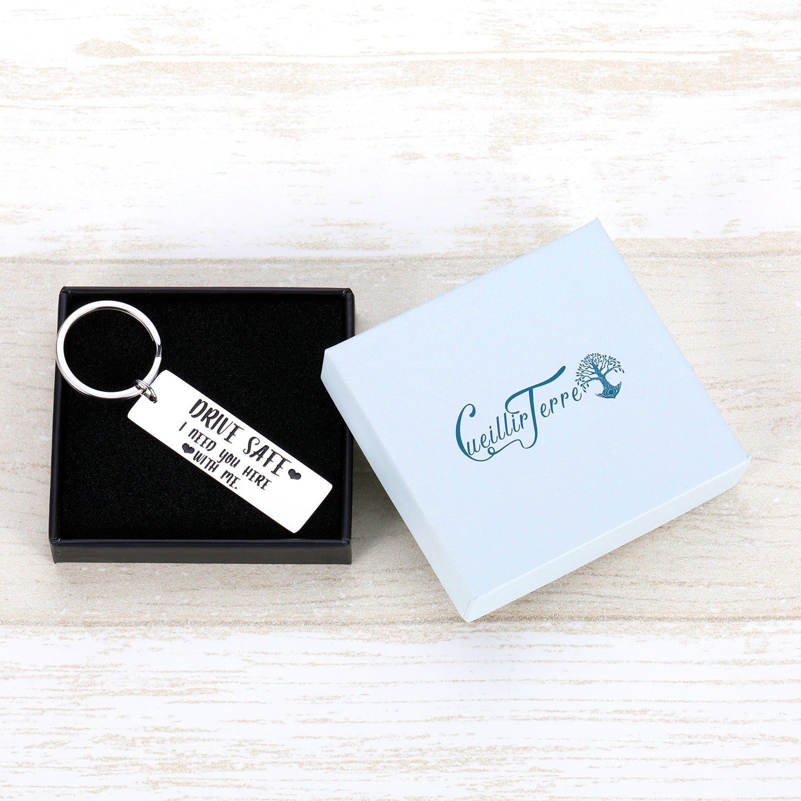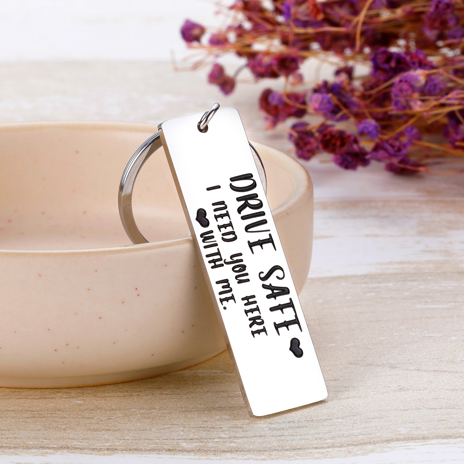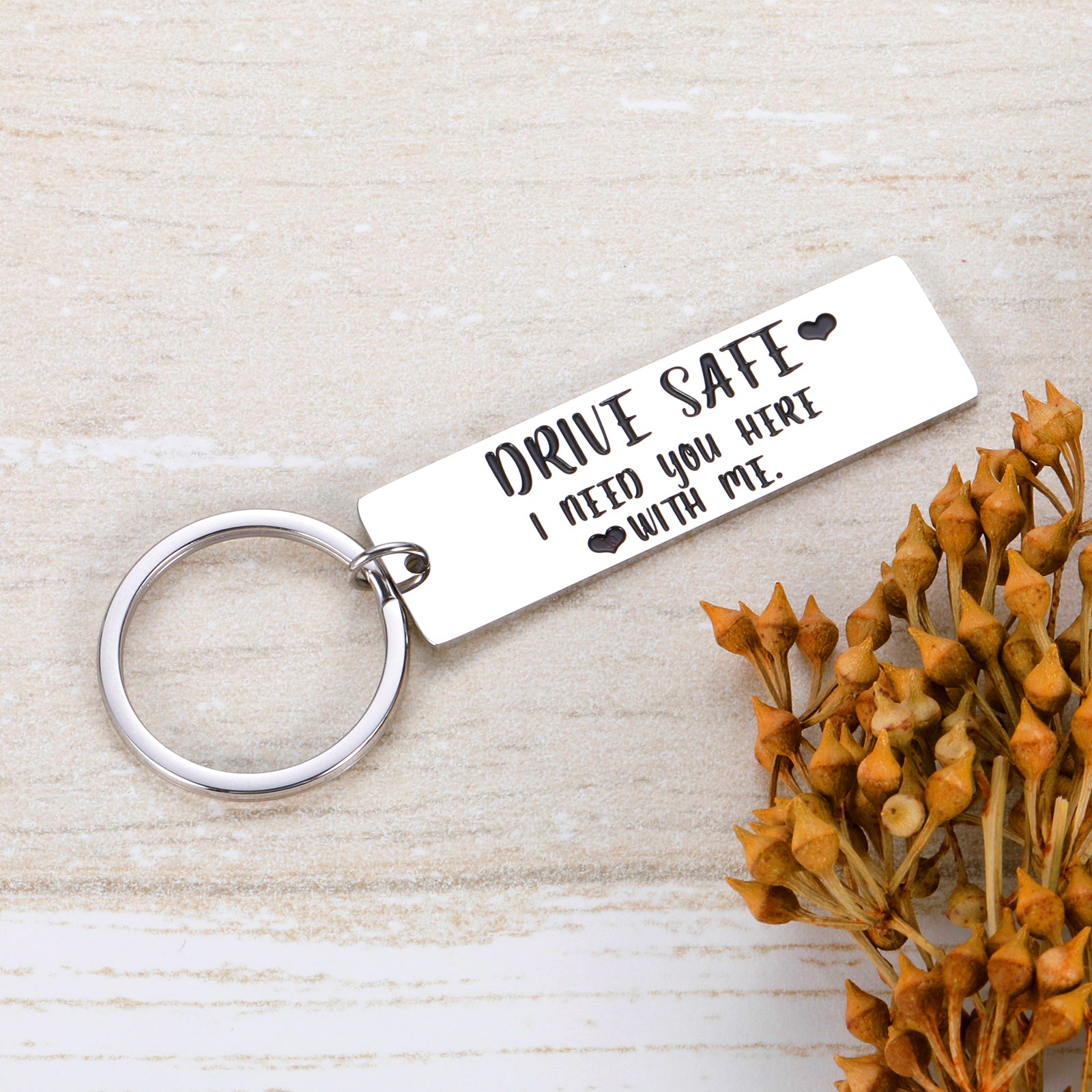 - Drive Safe Keychain: The keychain is engraved with “Drive safe I need you with me”. Keep your loved one safe by reminding them each and every time they start the car, how much you love them!