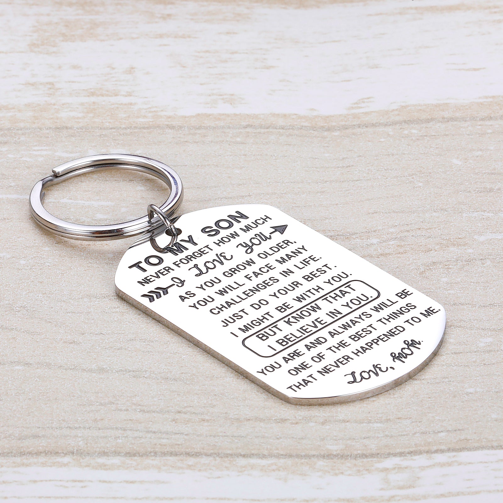 - Exquisite Gift Box: The son keyring gift is wrapped with plastic films and exquisite gift box. The double packages prevent scratch during shipping. We pay attention to all details of this beautiful gift for your dear son, stepson, your little prince.