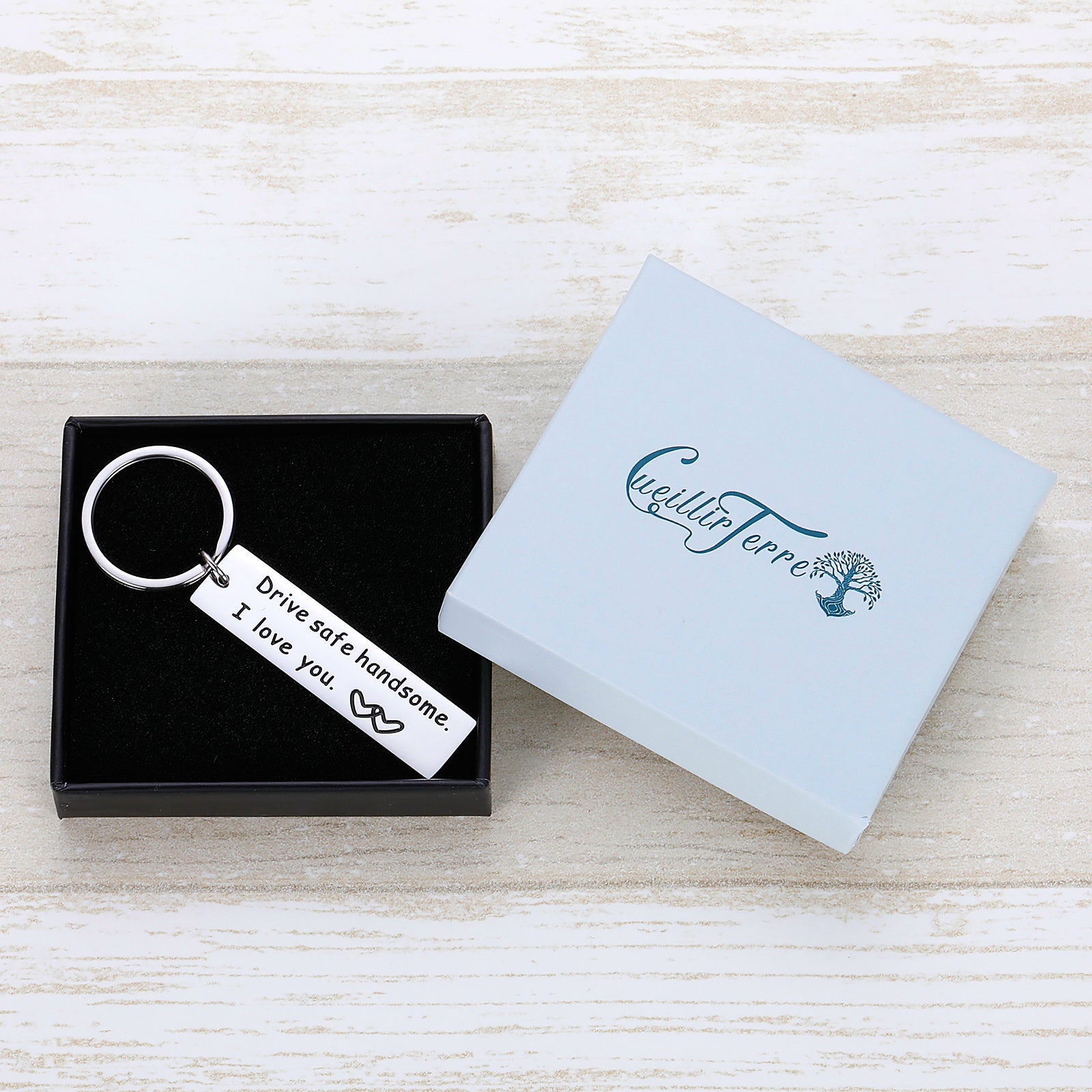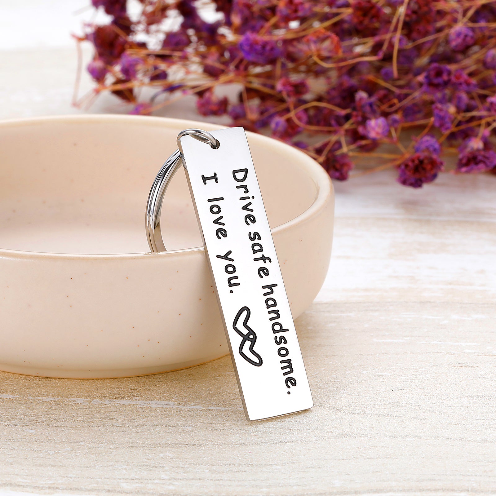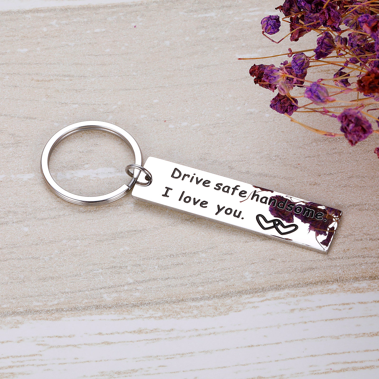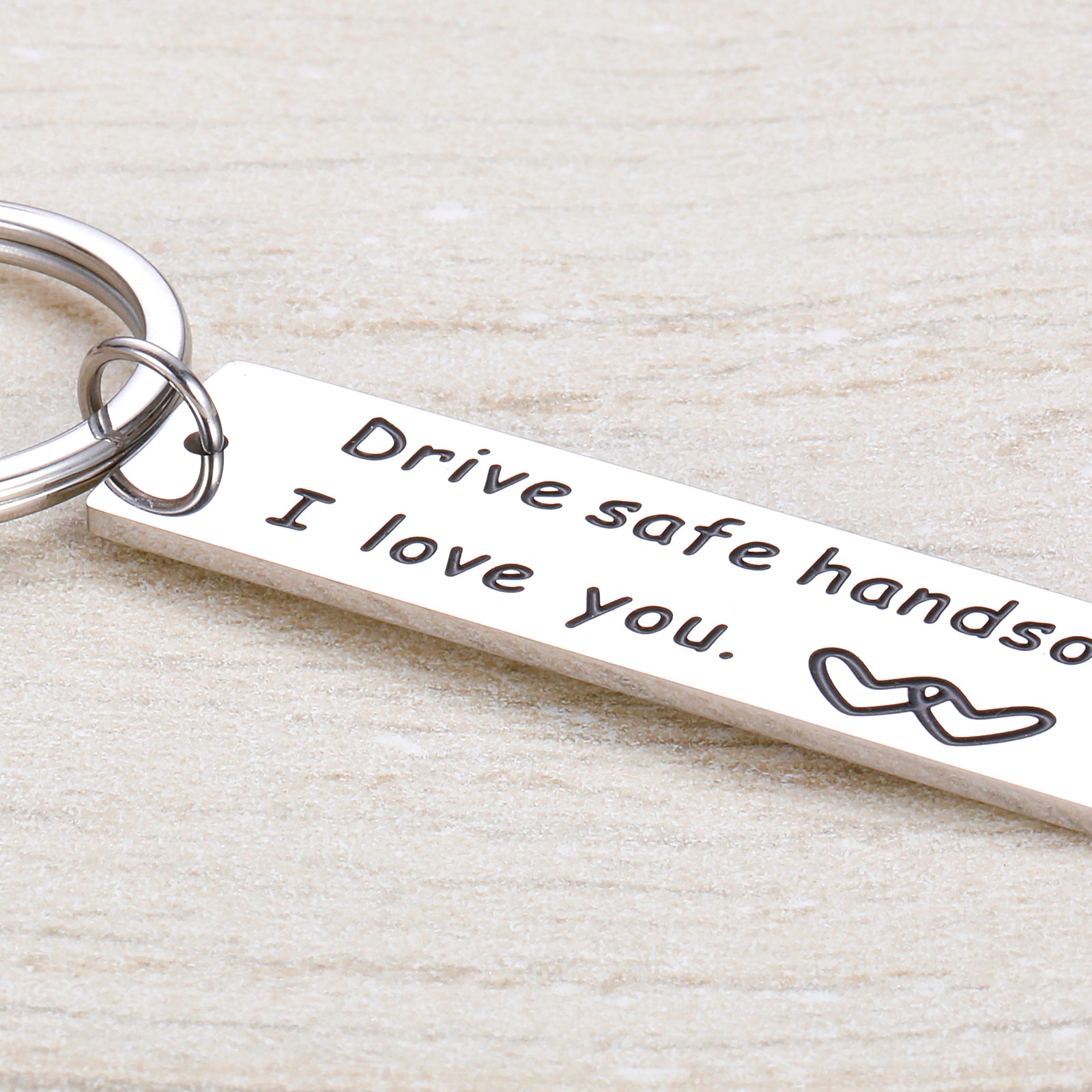 - Drive Safe Keychain is engraved with "Drive Safe Handsome. I love you." A fabulous reminder keyring for your loved boyfriend / husband / hubby / fiancé / bf / friend / son / daddy / partner / stepdad / children / trucker to drive safely.