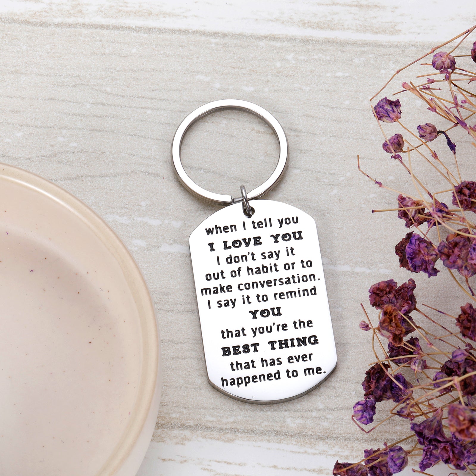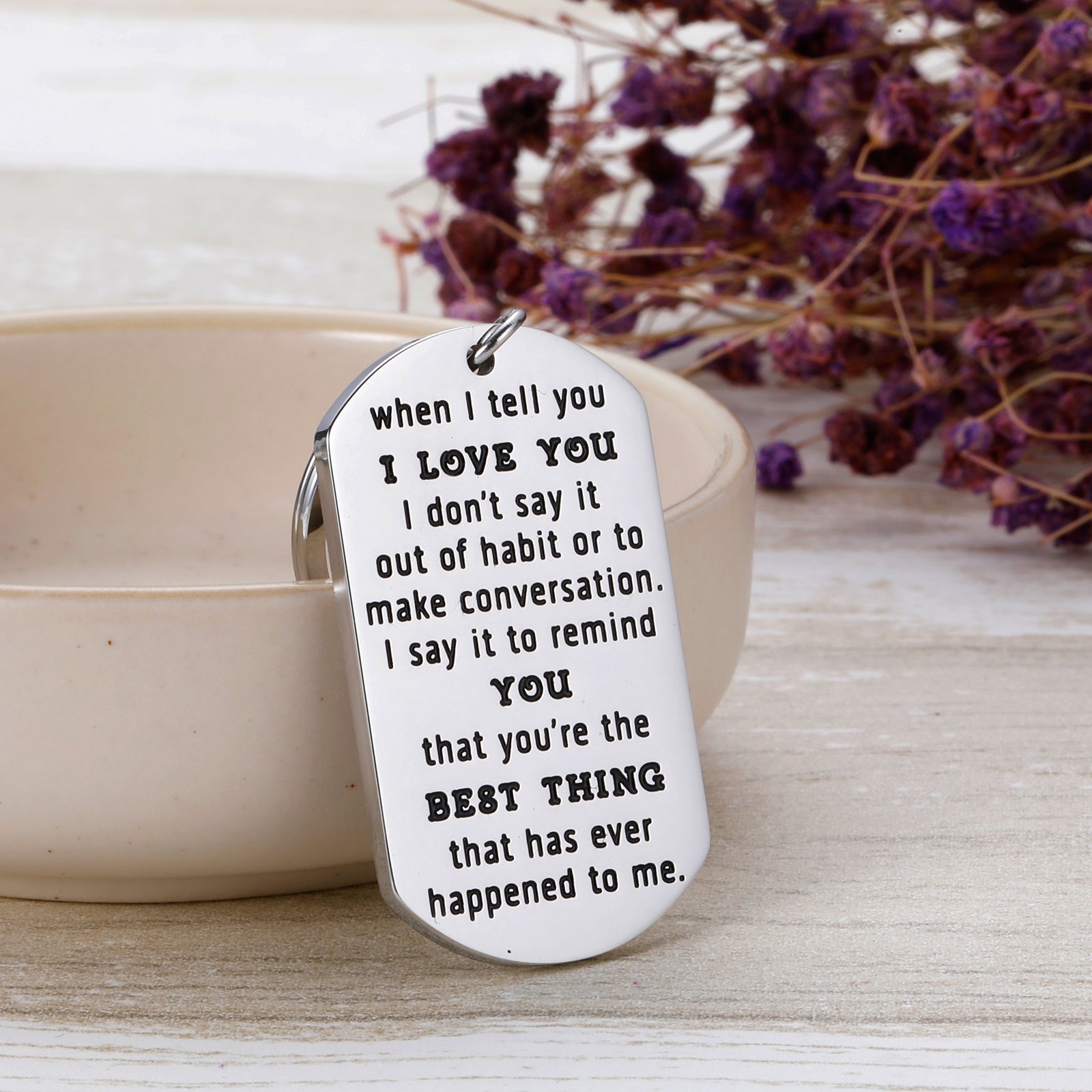 - Sweet messages for him/her: Engraved romantic words “when I love you I don’t say it out of habit or to make conversation I say it to remind you that you’re the best thing that has ever happened to me”, special gift for the person you love.