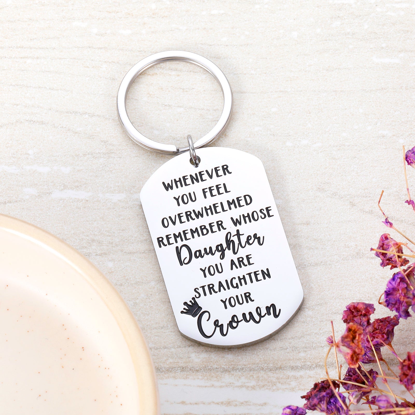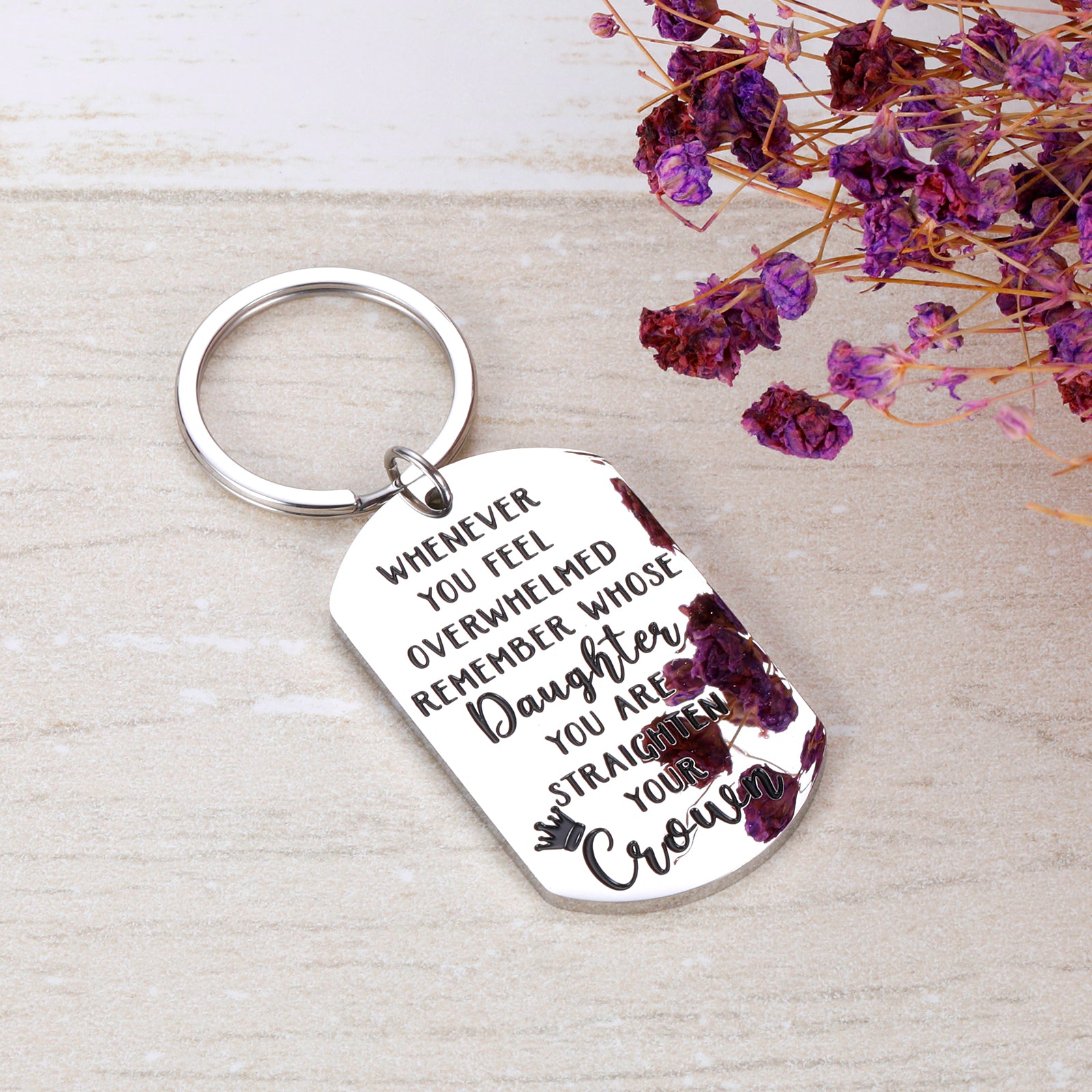 • Inspirational Gifts for Women: Whenever you feel overwhelmed... remember whose daughter you are and straighten your crown, this inspirational quote keychain reminds teenage girls of their inherent worth as well as reminding the grown woman that they are capable of anything.
