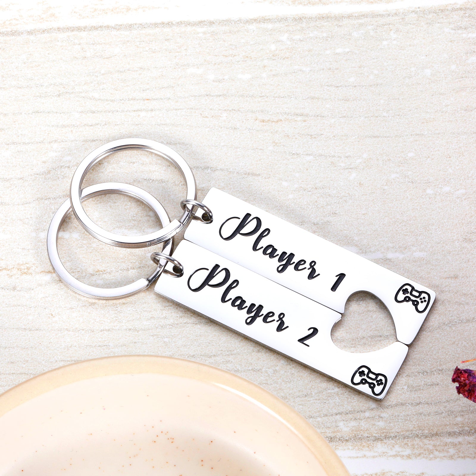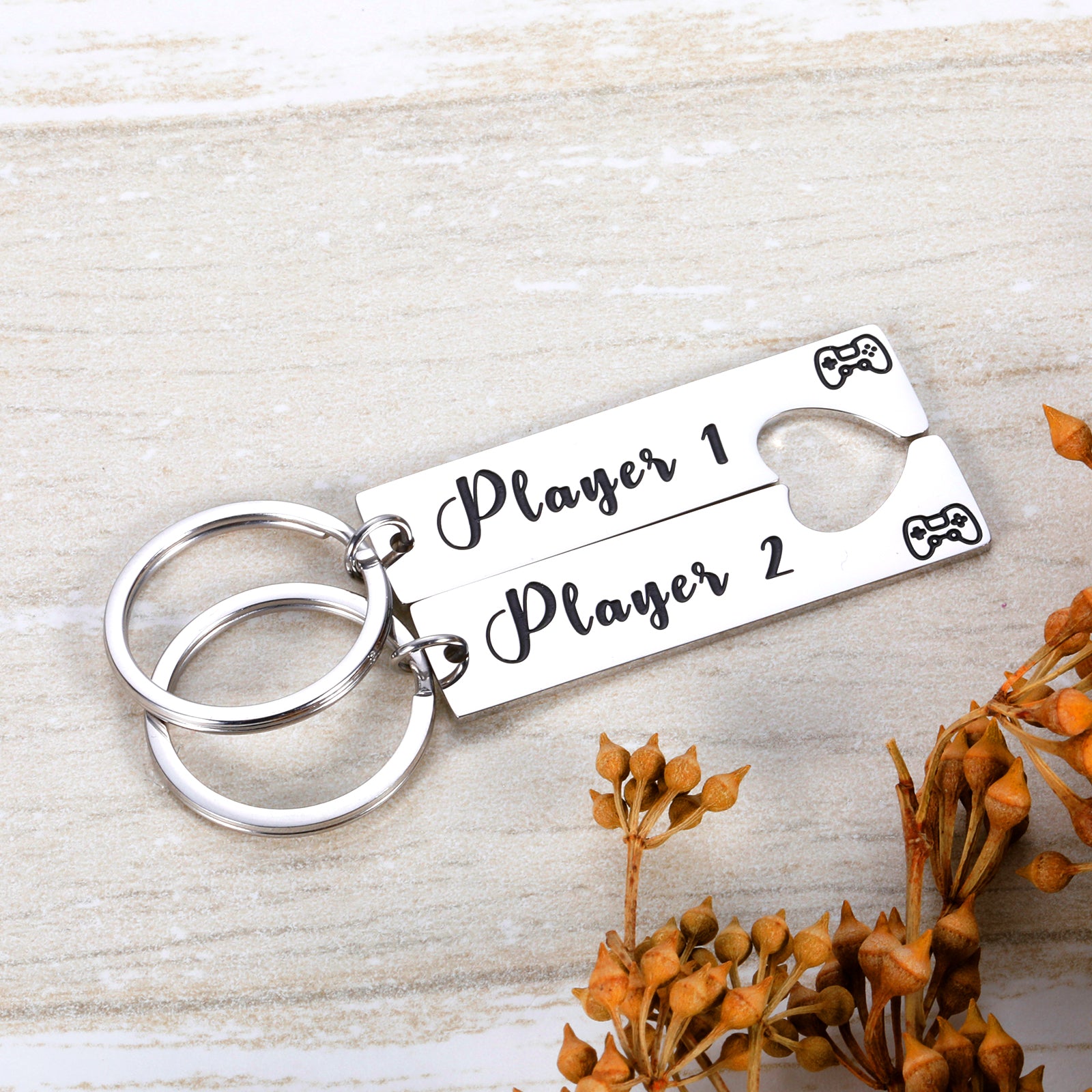 Couple Keychain Gamer Lover Gifts for Boyfriend Girlfriend Husband Wife Fiance Fiancee Player 1 Player 2 Keychain for Him Her Birthday Anniversary Valentine's Day Birthday Jewelry Gifts