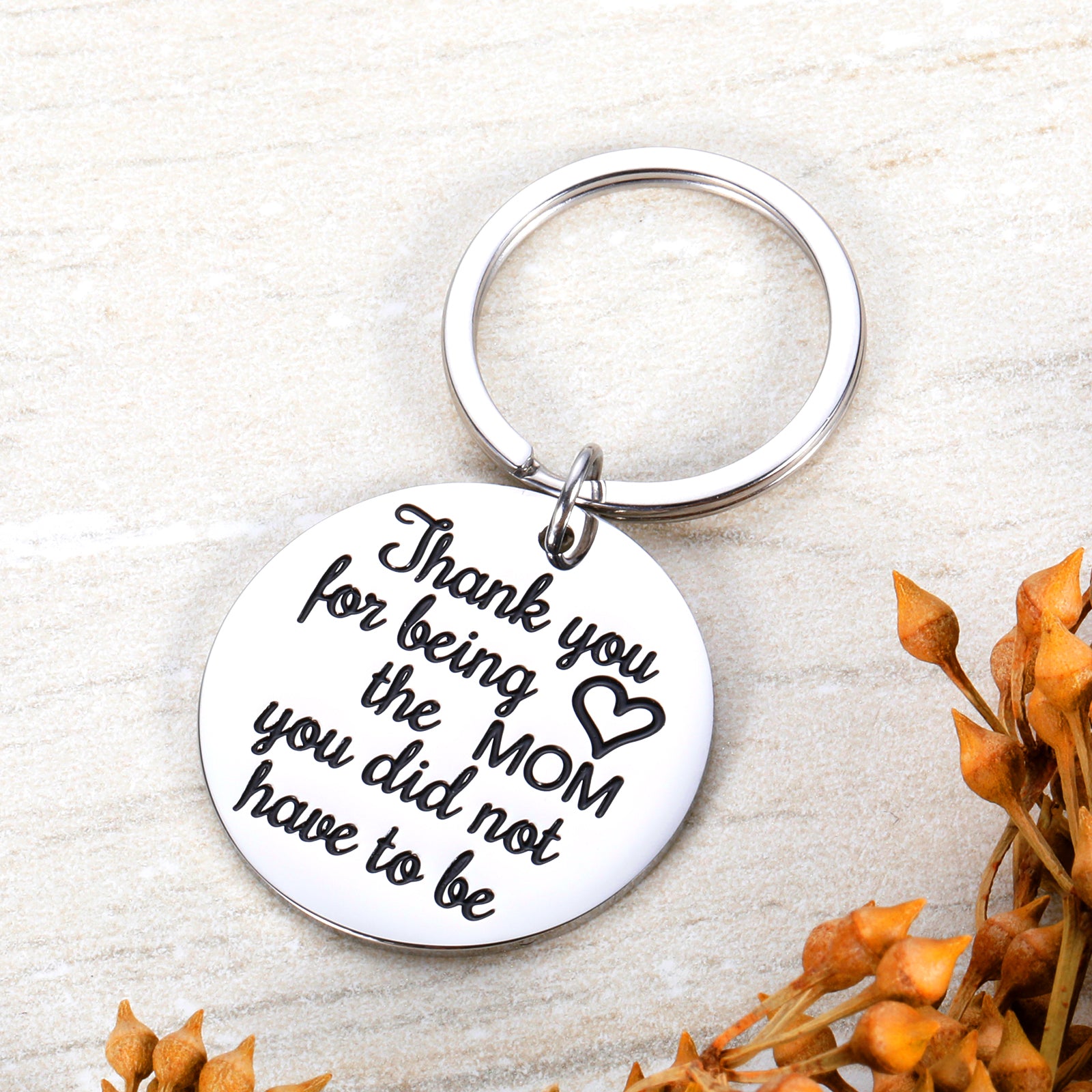 - Step Mom Gifts: Thank you for being the mom you didn't have to be. We all love our mothers who have given us so much more more and shared a part of herself with us. There's no way to ever thank her for all that she's done. This beautiful keychain would be a daily reminder of how much her love means to you.