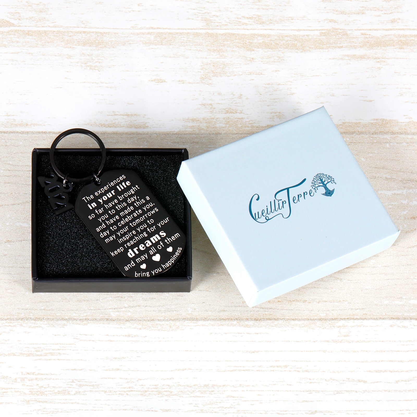 • Engraved with Motivational Quote: The graduation keychain engraved with The experiences in your life so far have brought you to this day,and have made this a day to celebrate you,may your tomorrows inspire you to keep reaching for your dreams and may all of them bring you happiness.Best graduation key ring for grandson, granddaughter, sisters, brothers, neighbors, daughters, sons,classmate, roommates.