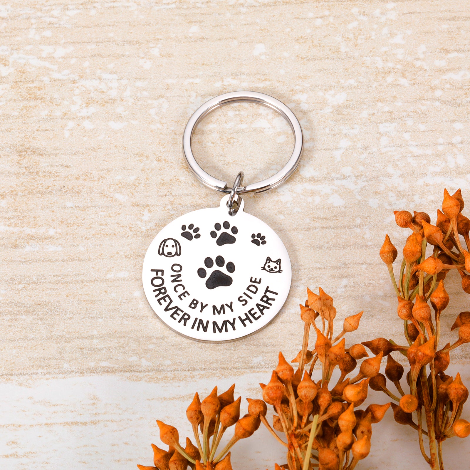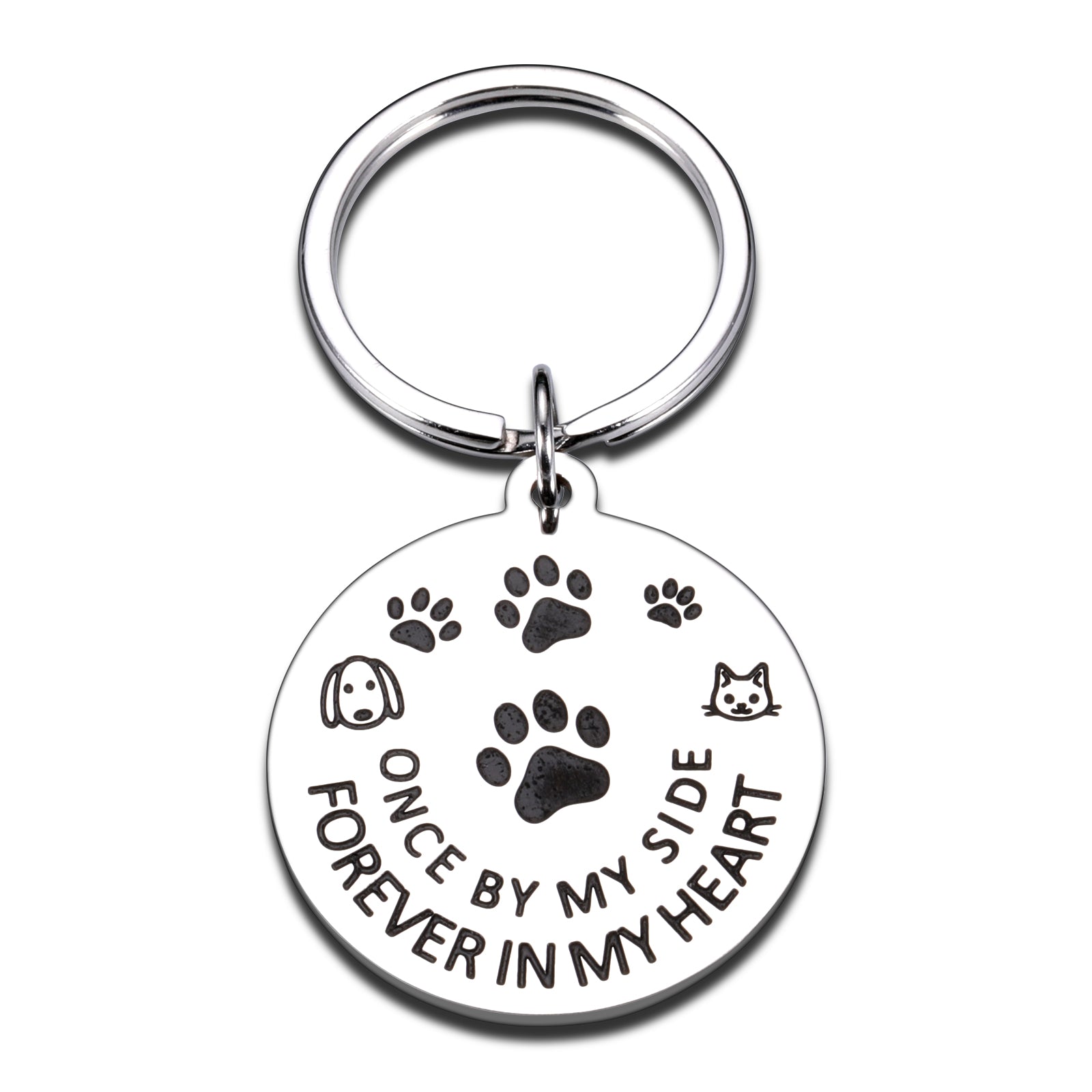 | 🐾Pet Memorial Gifts🐾- For pet owners, keepers, or lovers, whether it is a pet lost, accidental death or natural aging pass away, this is a very heavy blow. Bring son, daughter, mom, dad, grandmom, granddad, grandson, granddaughter, friends, boyfriend, girlfriend, sister, brother, men, women, boys, girls, or collegues who loss a beloved pet, cat, dog, or rabbit and now very sad some comfort and warmth with this keychain engraved with touching text 'Once by my side, forever in my heart'. |