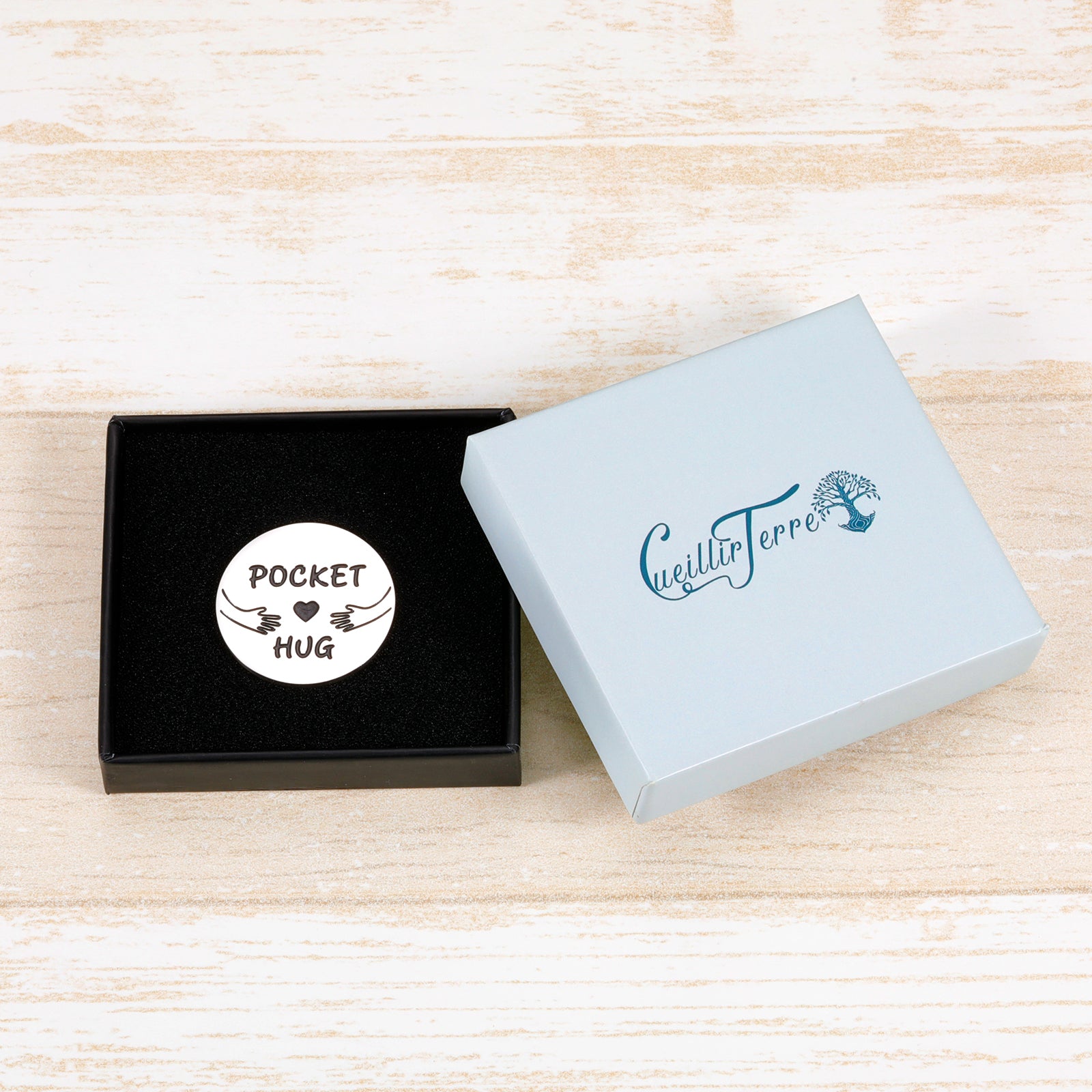 <b>About Cueillir Terre: </b><br>Cueillir Terre specializes in providing you with the most exceptional Jewelry shopping experience available. We offer keychains, wallet card inserts, bookmarks, and so on, and we will put on shelves a variety of new products frequently to meet the different needs and aesthetics of customers. We focus on every detail and always do our best customer service to all our customers. <br><br><b>Specifications: </b><br><br>The double-sided token:  <br>Front: Life is tough, my darling, but so are you.  <br>Back: Pocket hug. It's also engraved with two hands embracing and a heart. <br><br>This little pocket hug token is suitable as a long distance relationship gift to encourage someone who is going through a hard time or comfort across the country who haven't been able to see each other for many months when they put it on their badge or pockets, or just somewhere. <br>A nice way to let your friends, family members, coworkers, colleagues, son, daughter, cousin, aunt, uncle, niece, nephew, god daughter, god son, stepdaughter, stepson, granddaughter, grandson, sister, brother, boyfriend, girlfriend, or bestie know they are always loved. <br>Get it send as a token to your classmates, daughter, son, niece, nephew, or friends to let them know they're never alone in this crazy world we're living in. <br>It is a wonderful way to show your care and love to your sister, brother, cousin, grandson, granddaughter, stepson, stepdaughter, roommates, spouse, dearest, the significant other, or friend on Christmas/xmas, valentine's day, halloween, birthday, new year, job change, bereavement, lockdown, isolation, or any other reason they need encouragement, and give the inspirational pocket hug token to them as a special gift. <br>Makes for a simple but touching gift. Not only use it as a token on the pocket, but also as a beautiful decoration. <br><br><b>Information: </b><br>Size: 3cm&3cm <br>Thickness: 0.2cm <br>Material: stainless steel <br>Color: Silver