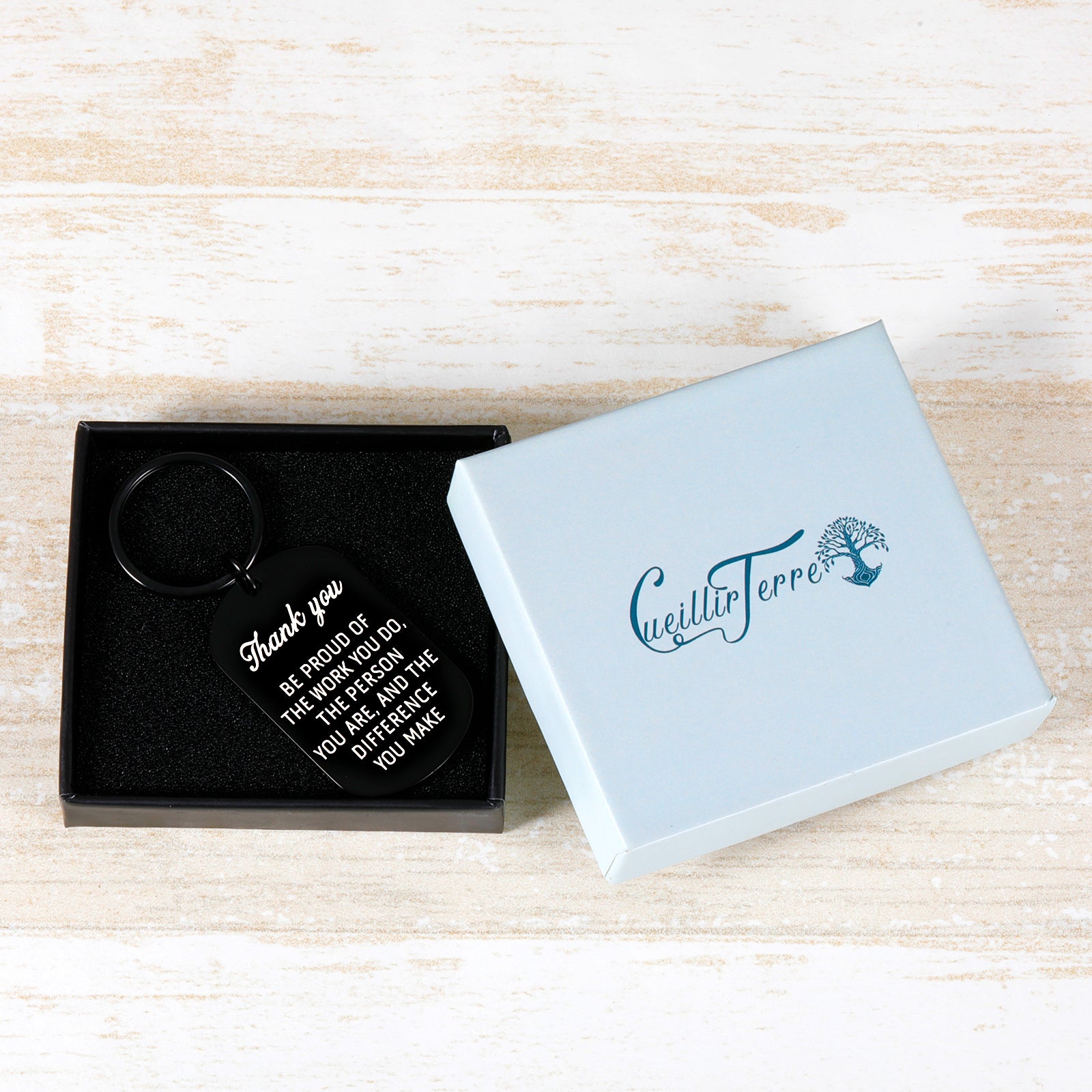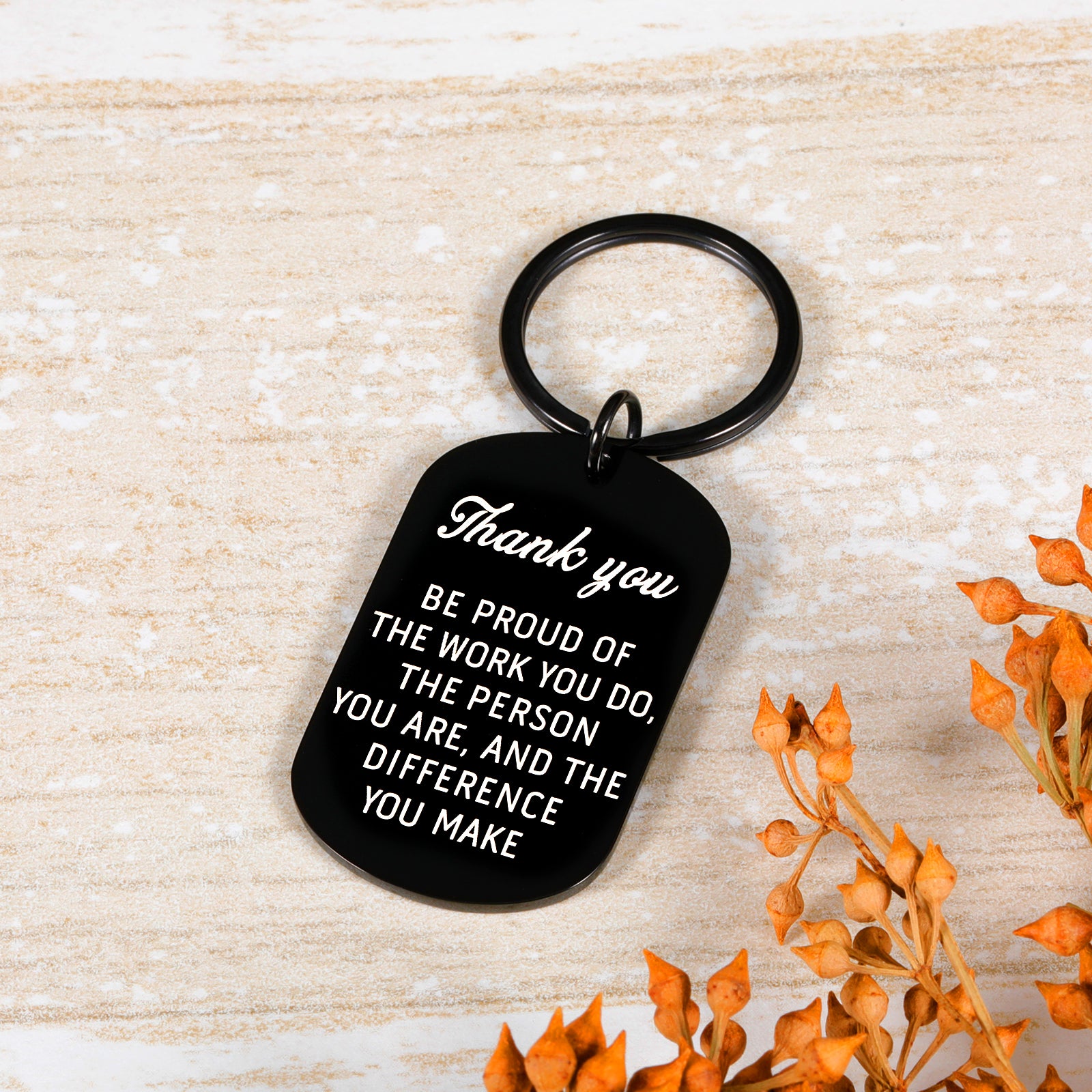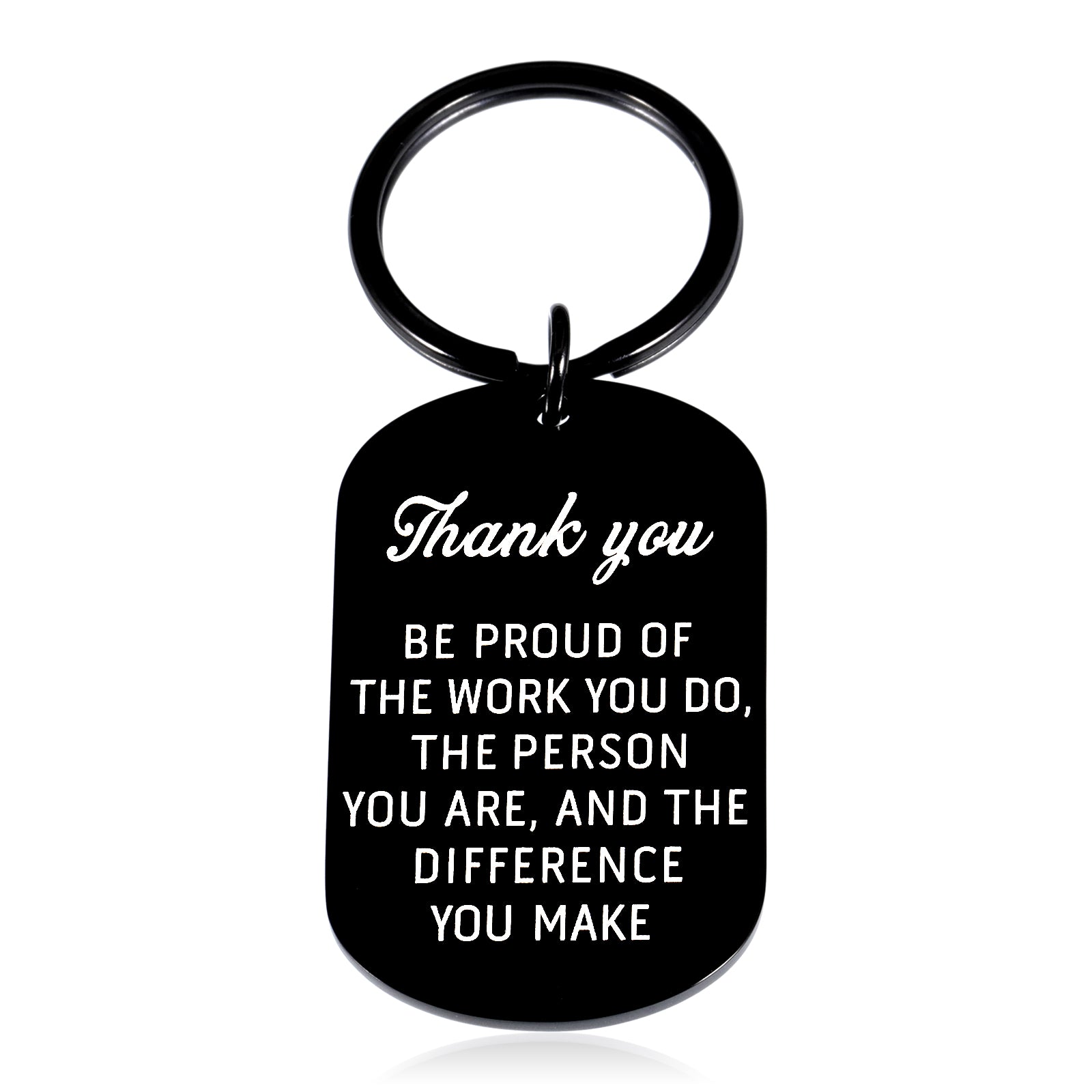 | Farewell Gifts Keychain for Employee- Black thank you keyring engraved 'Thank you, be proud of the work you do, the person you are, and the difference you make', must be a perfect gift idea for anyone special in your life, like your mentor, coworkers, colleagues, leader, boss, lady boss, staff, employee, team member, workmates, friends, partner, or work bestie, so you can send this keychain gifts to them at anytime you're thinking of those special work friends. |